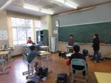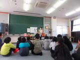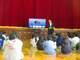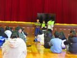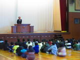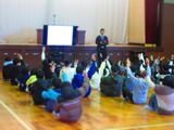 終業式後には生徒指導主任から、冬休みの過ごし方について話がありました。昨日の分団会で話し合われたことをもとに、クイズ形式で出題されました。