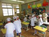 また、児童集会の後には、仲良し班の顔合わせがありました。明日から仲良し班に分かれての清掃が始まります。異年齢活動が多いことが、岡田小学校の特徴です。